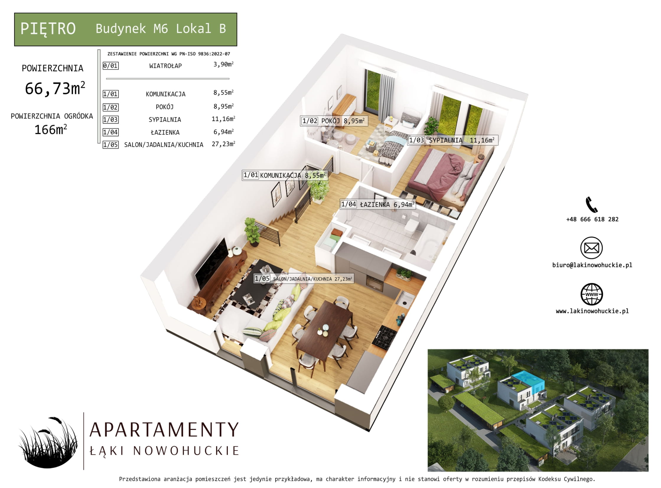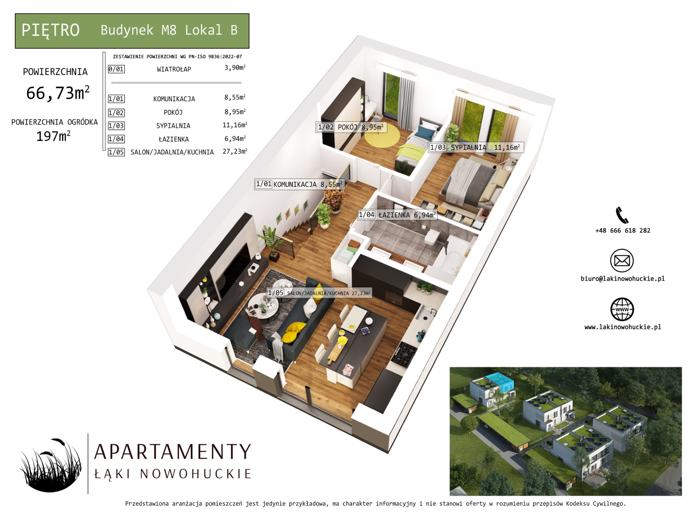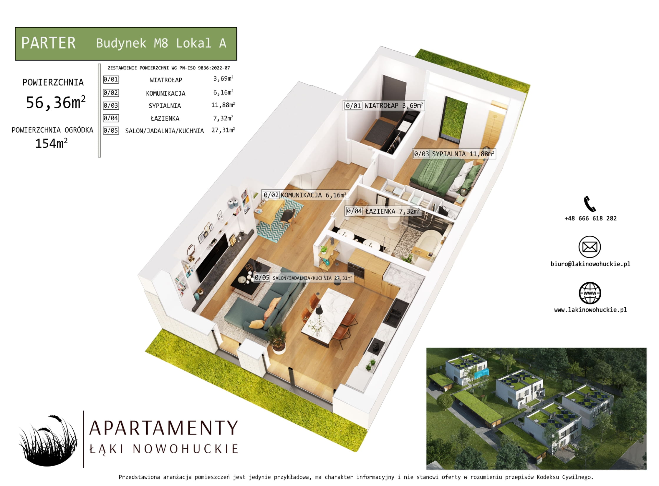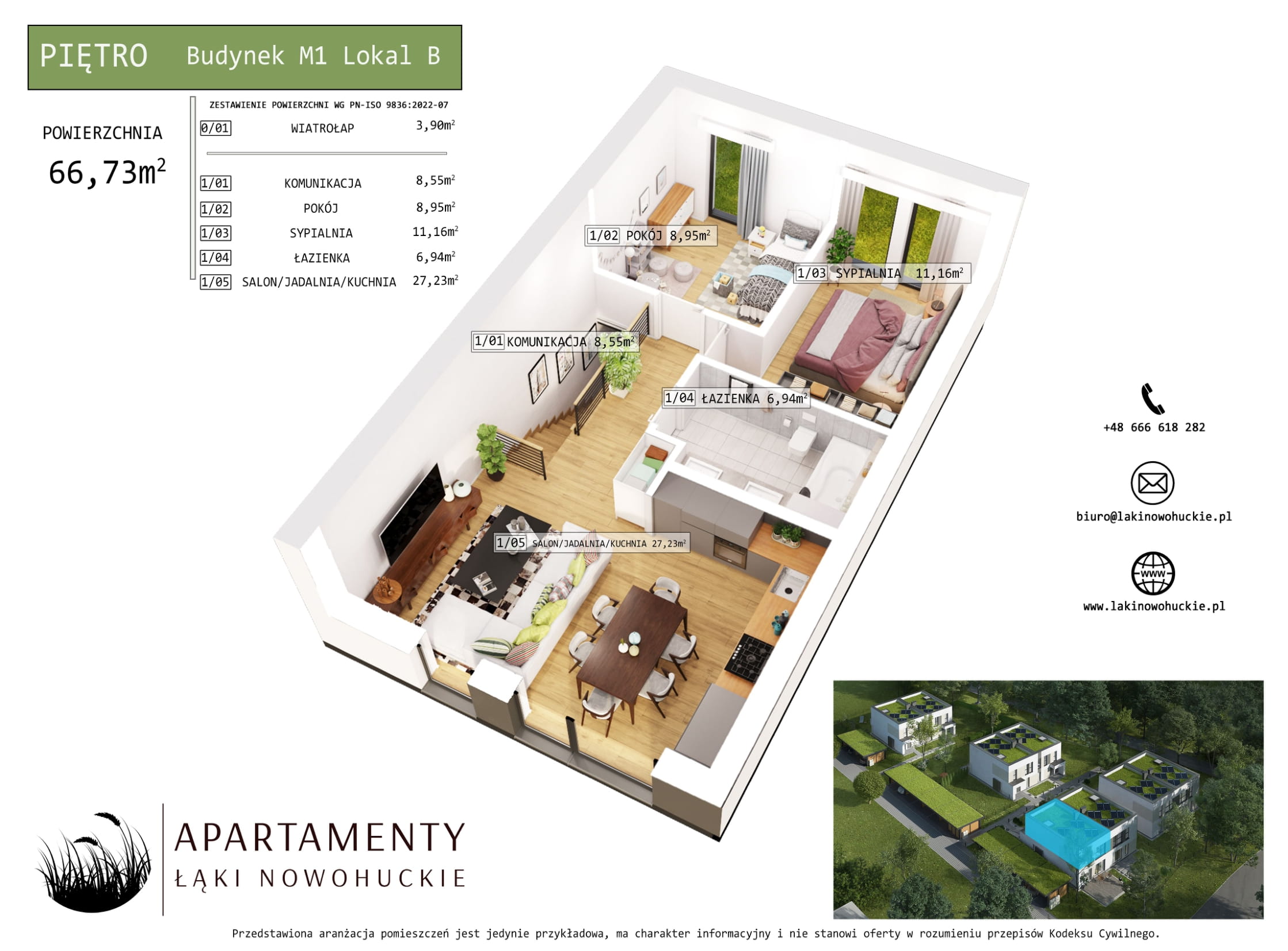 Powyższa oferta ma charakter informacyjny i nie stanowi oferty handlowej w rozumieniu art. 66 §1 Kodeksu Cywilnego oraz innych właściwych przepisów prawnych. Przedstawione na stronie internetowej lakinowohuckie.pl wizualizacje mają postać zbliżoną do finalnego obiektu i zagospodarowania terenu, tj. mogą odbiegać od docelowego, rzeczywistego wyglądu budynków i ich otoczenia w szczególności w zakresie kolorystyki. Zmianie nie ulegną istotne cechy świadczenia oraz funkcjonalność budynków.